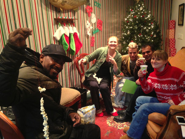 handing out hot chocolate and coffee. When guests entered, there was a multiracial American “family” waiting to welcome them as their own.